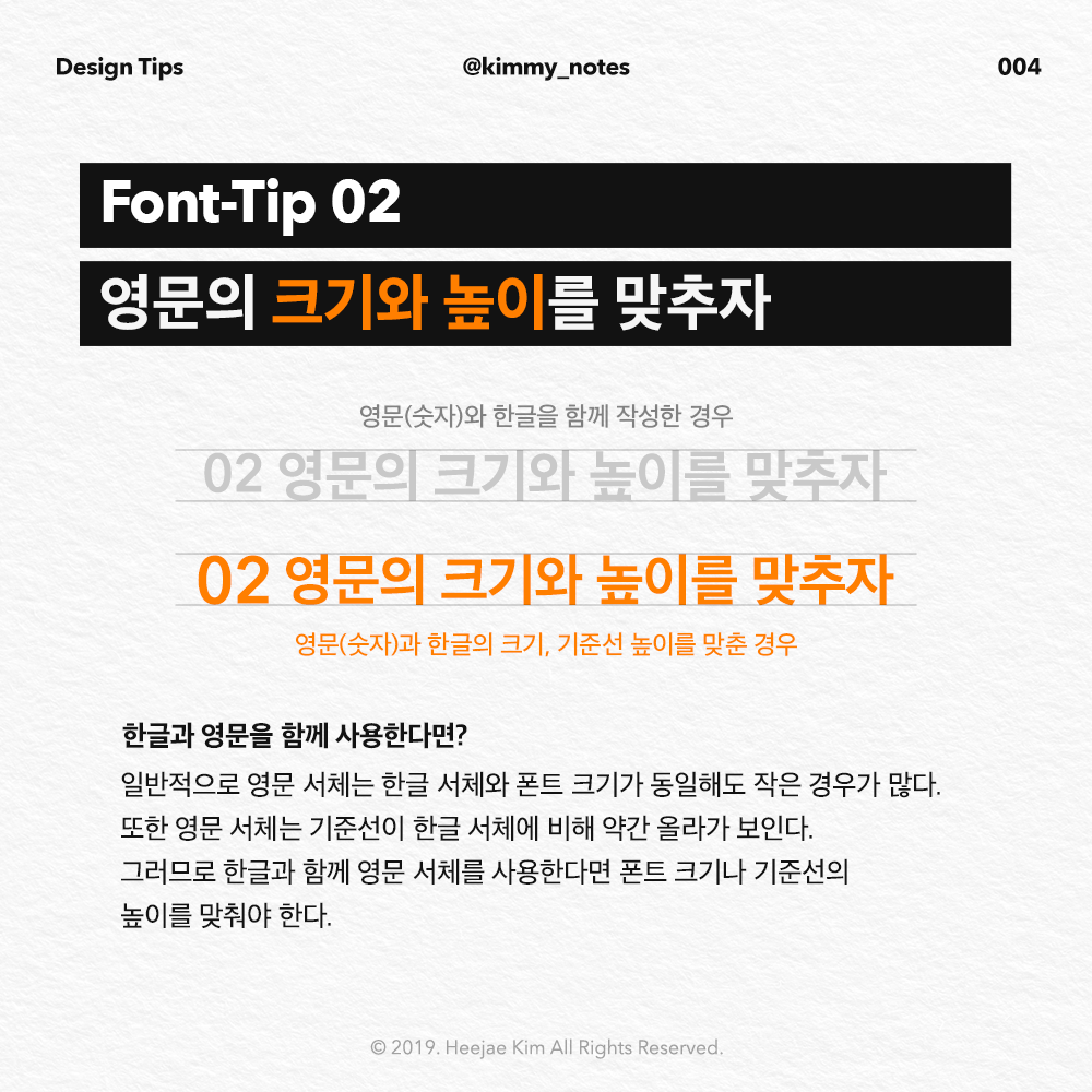 그러므로 한글과 함께 영문 서체를 사용한다면 폰트 크기나 기준선의 높이를 맞춰야 한다.