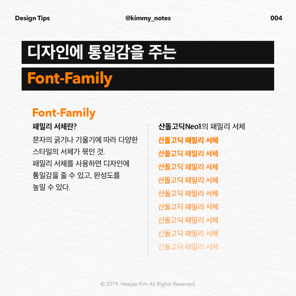 패밀리 서체를 사용하면 디자인에 통일감을 줄 수 있고, 완성도를 높일 수 있다.