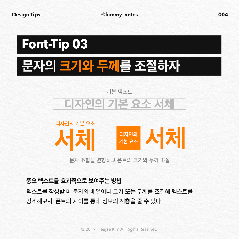 텍스트를 작성할 때 문자의 배열이나 크기 또는 두께를 조절해 텍스트를 강조해보자.