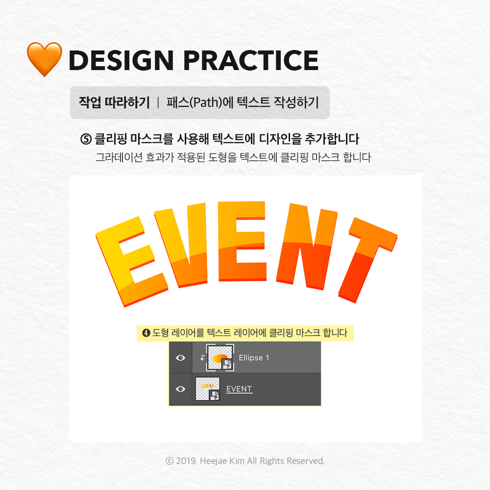 ④ 도형 레이어를 텍스트 레이어에 클리핑 마스크 합니다
