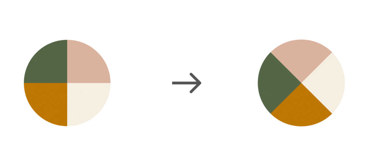 아니면 조금 더 모험적으로 각 반원을 다른 각도로 회전시킬지도 모릅니다. 이것이 제가 패턴 디자인을 다루며 무엇이 맞는지 보는데 있어 중요한 점입니다.