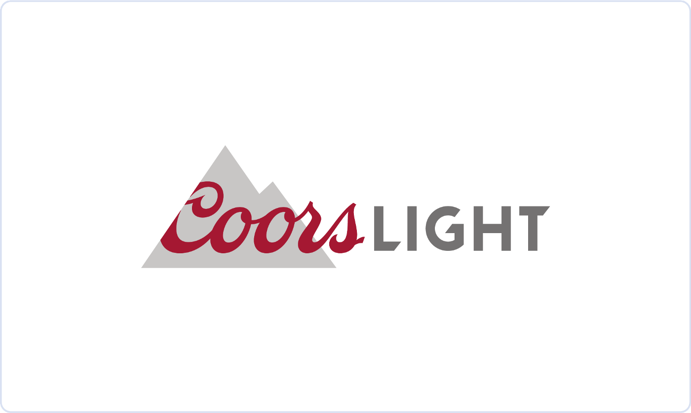 쿠어스 라이트(Coors Light)의 최신 로고는 회색의 산에 클래식한 레드 스크립트 서체가 올려진 플랫 디자인을 적용했습니다. 이 산은 콜로라도주 텔루라이드 근처에 위치한 윌슨 피크(Wilson Peak)를 나타냅니다. (Coors Brewing Company가 설립된 곳) 이 브랜드의 맥주 캔 디자인은 눈으로 덮인 산을 더 사실적으로 보이게 묘사합니다.