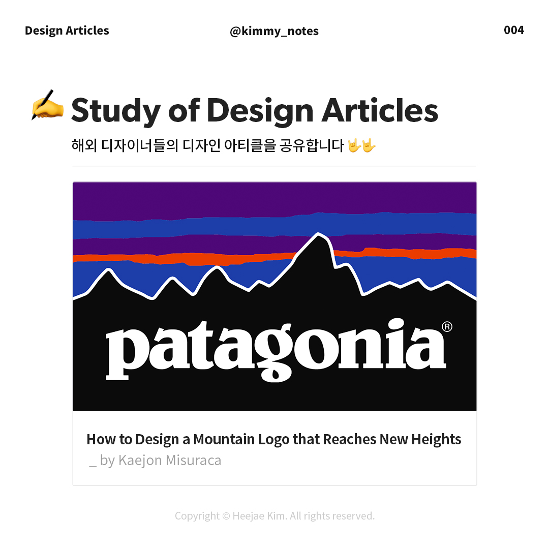파타고니아(Patagonia)의 로고는 배경에 산 풍경을 표현한 것이 특징입니다. 파타고니아의 설립자인 Yvon Chouinard는 수십 년 동안 아르헨티나에서 등산을 해왔으며 등산 커뮤니티에서 유명해졌습니다. 브랜드를 출시할 때 그는 파타고니아의 유명한 피츠로이 산괴(Fitzroy Massif)의 양식화 된 이미지를 심벌로 사용하기에 적합하다고 생각했습니다.