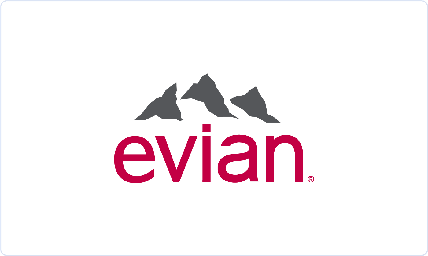 에비앙(Evian)의 로고는 워드마크 위에 산봉우리가 놓여 있습니다. 이 산봉우리는 스위스 제네바 호수의 남쪽 해안에 있는 에비앙의 원산지, 에비앙 레 뱅(Évian-les-Bains)의 아름다움을 위풍당당하게 보여줍니다.