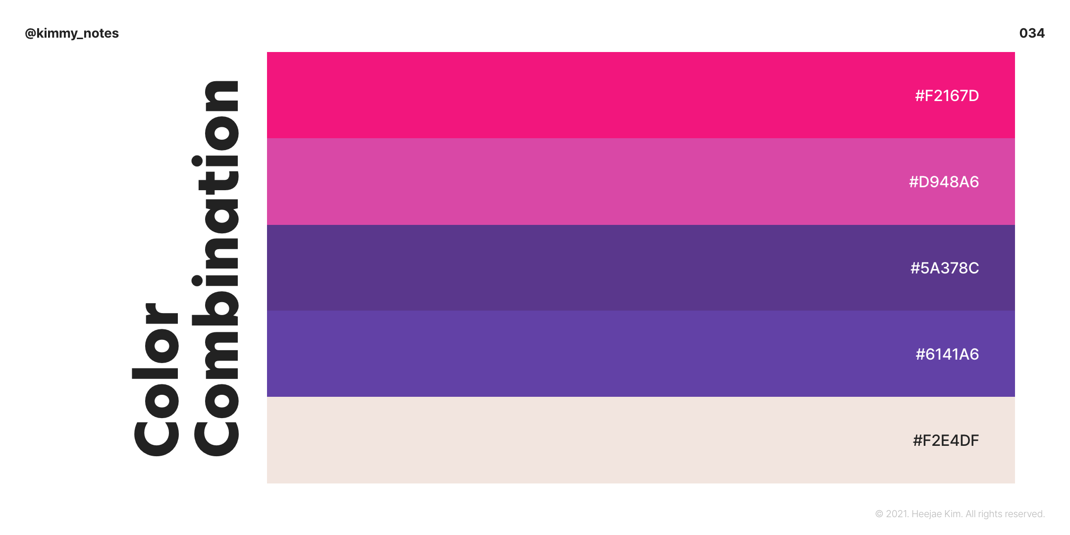 아름다운 컬러 조합을 공유합니다👩🎨 💡컬러는 디자인을 의미있게 만들고 사용자의 시선을 원하는 곳으로 안내할 수 있습니다. 오래 지속될 수 있는 디자인을 사용자들에게 인식시키기