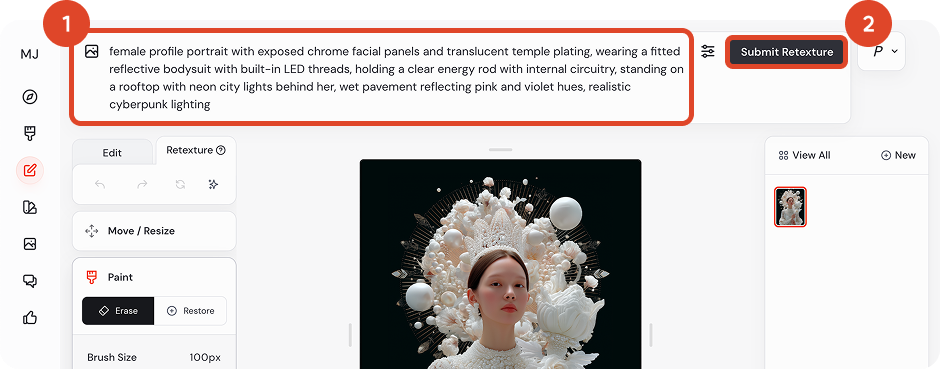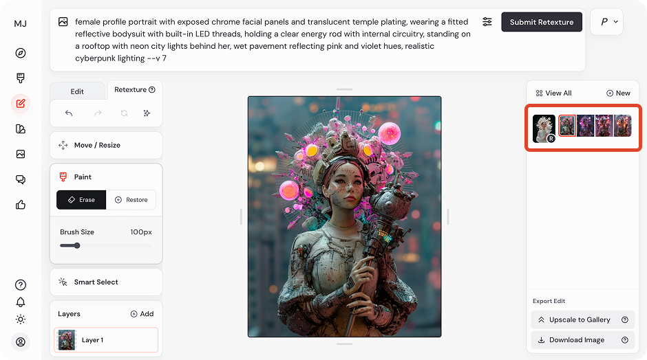 기존 이미지의 프롬프트가 자동으로 제안돼요.