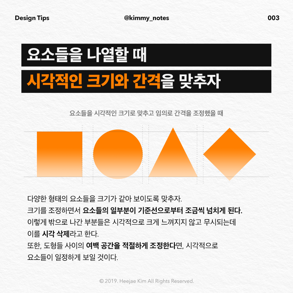 요소들을 나열할 때 시각적인 크기와 간격을 맞추자
